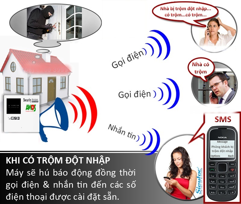 – Thực hiện cuộc gọi khẩn cấp và gởi tin nhắn khi hệ thống bị kích hoạt báo động.