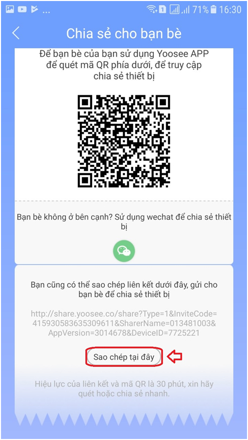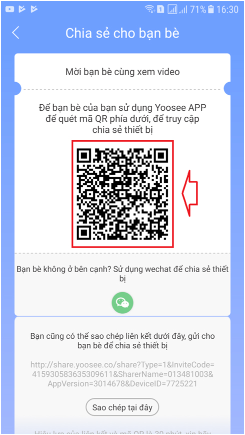 B3: Khi bạn nhấn xong sẽ hiện ra một bảng có tiêu đề phần này có thể để bạn bè của bạn sử dụng Yoosee APP để quét mã QR phía dưới.